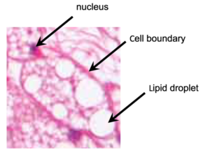 - Prior to staining, dissected tissue is often subjected to a harsh process: fixation, paraffin embedding, sectioning etc. These mechanical processes may cause certain materials to be lost. For instance, paraffin dissolves lipid, consequently lipid-containing regions (lipid droplets) of adipocytes in histology slides turn empty after being processed. At the same time, a tissue section may have some actual empty spaces in between, within and outside the cells (example below). So an automated segmentation looking for lipid droplets might be confused by these true empty spaces.
