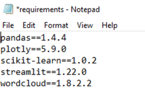 To help with reproducibility, it is always better to have the packages that are used in the notebooks listed along with their versions in a separate text file (requirements.txt) (Figure 4). This will help others to run the notebook without any discrepancies.