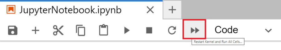 Figure 2: Image showing the ‘Restart Kernel and Run All Cells` button in a Jupyter Notebook.
