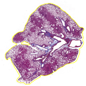 Here’s an example of a tissue section with an annotation (yellow outline):